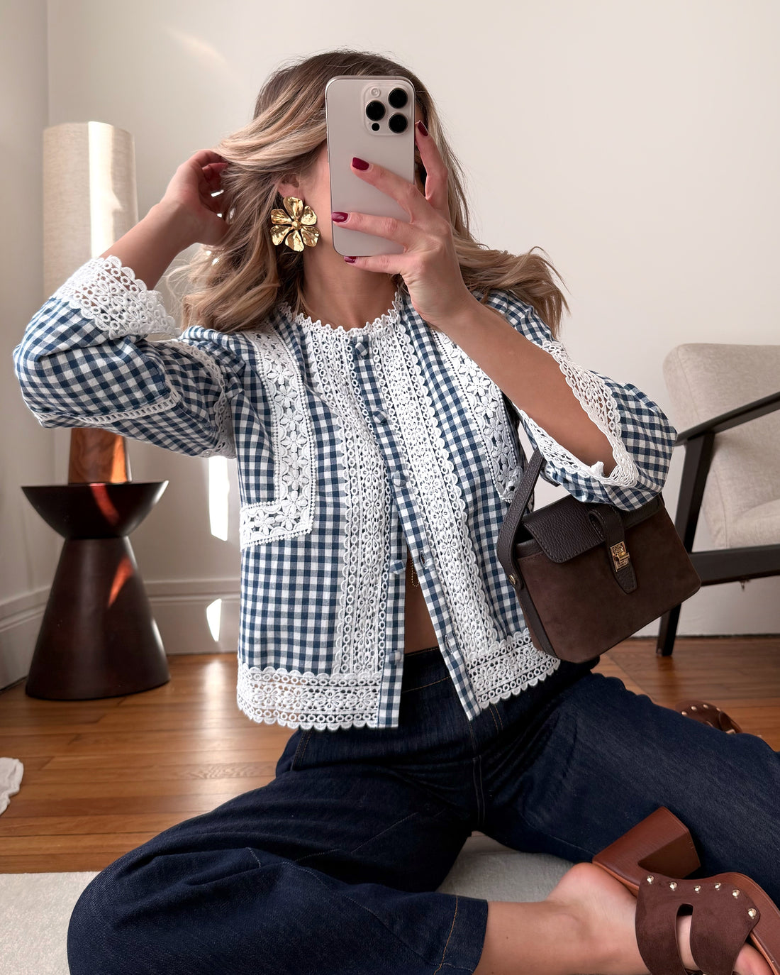Chemisier brodé à imprimé Vichy JANE