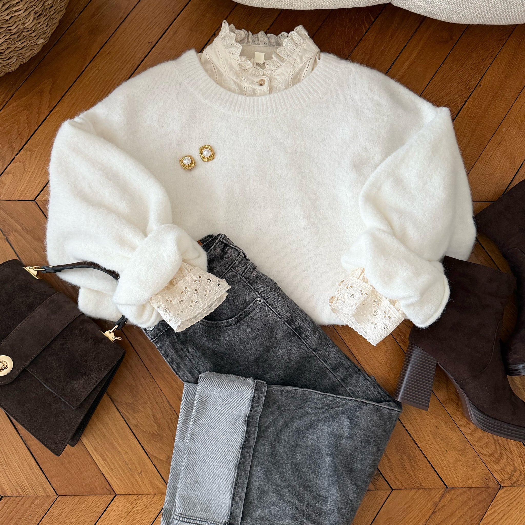 Découvrez le pull chemise 2 en 1 LOUISON au charme délicat. Son col et ses...