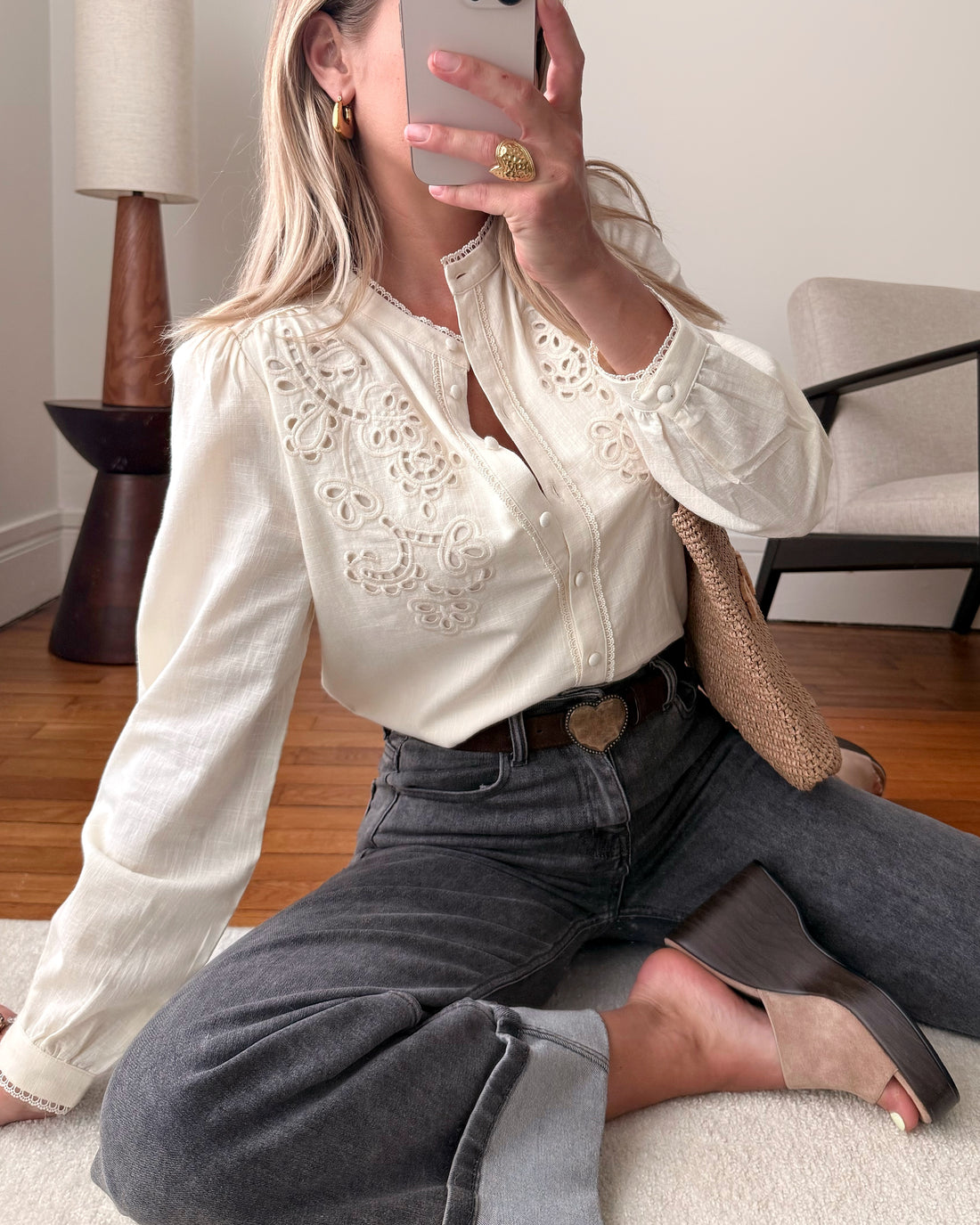 Chemisier brodée en lin mélangé NILUZI