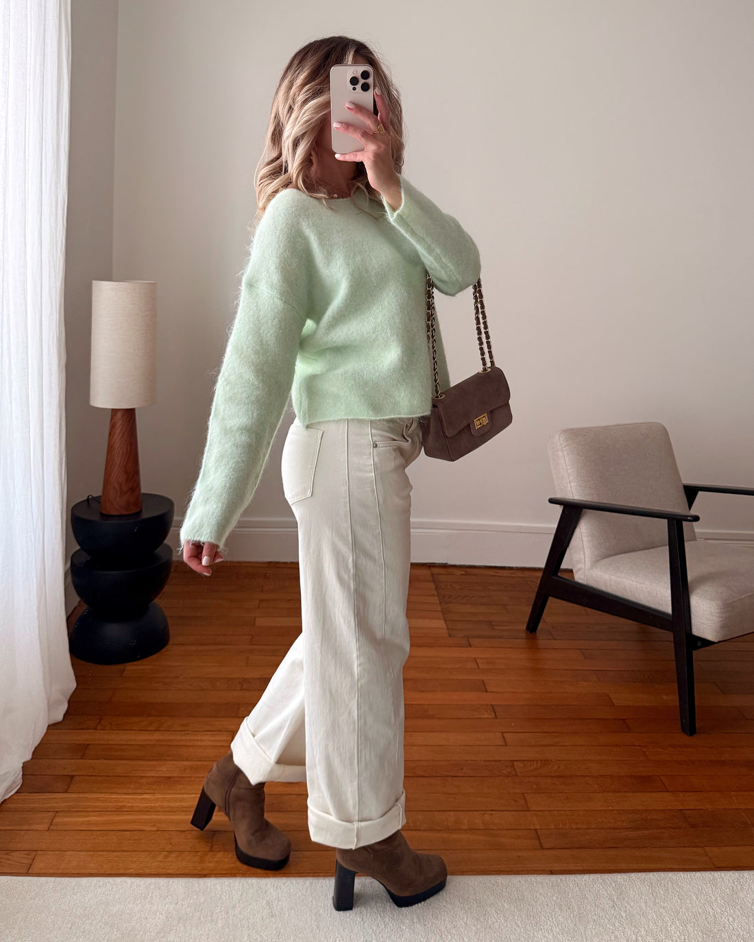 Maille douce col rond CARLSON - vert amande