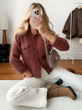 Chaleureux et moderne, notre cardigan TOUSSAIN en maille épaisse se distingue par son col chemise structuré et ses poches plaquées à rabat avec boutons, alliant praticité et style. Parfait pour compléter un look décontracté ou habillé.