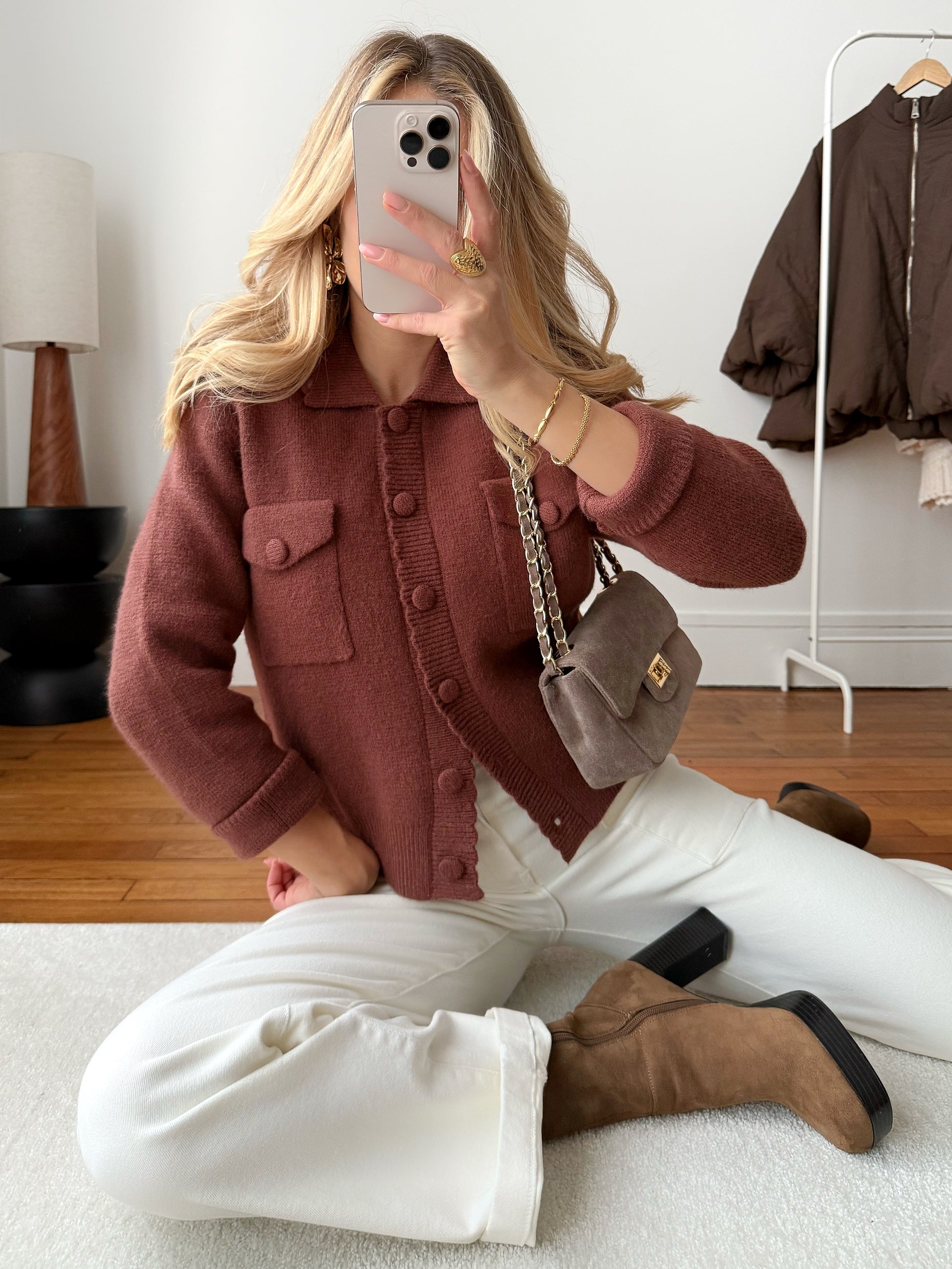 Cardigan col chemise TOUSSAIN - bois de rose foncé