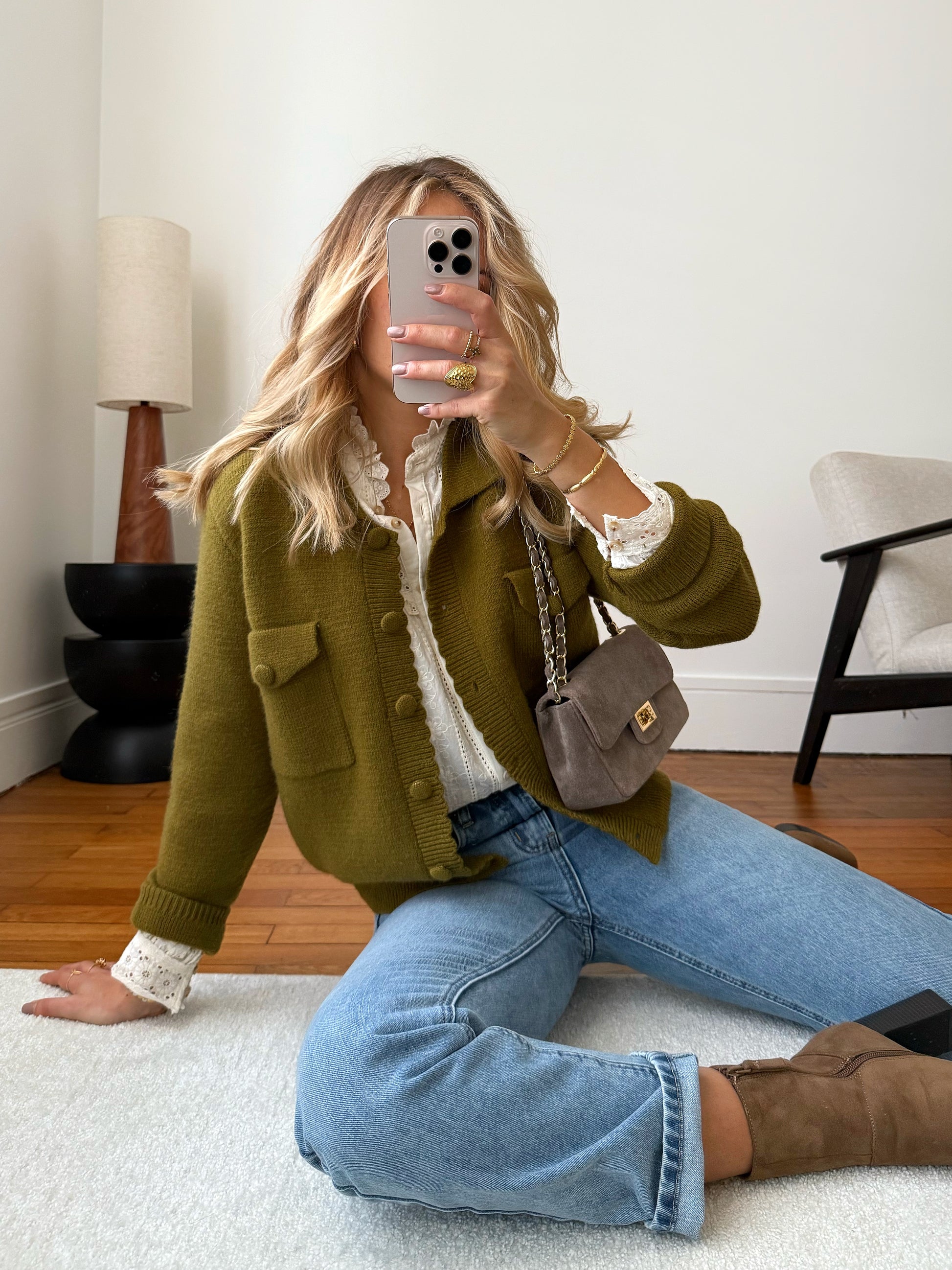 Chaleureux et moderne, notre cardigan TOUSSAIN en maille épaisse se distingue par son col chemise structuré et ses poches plaquées à rabat avec boutons, alliant praticité et style. Parfait pour compléter un look décontracté ou habillé.