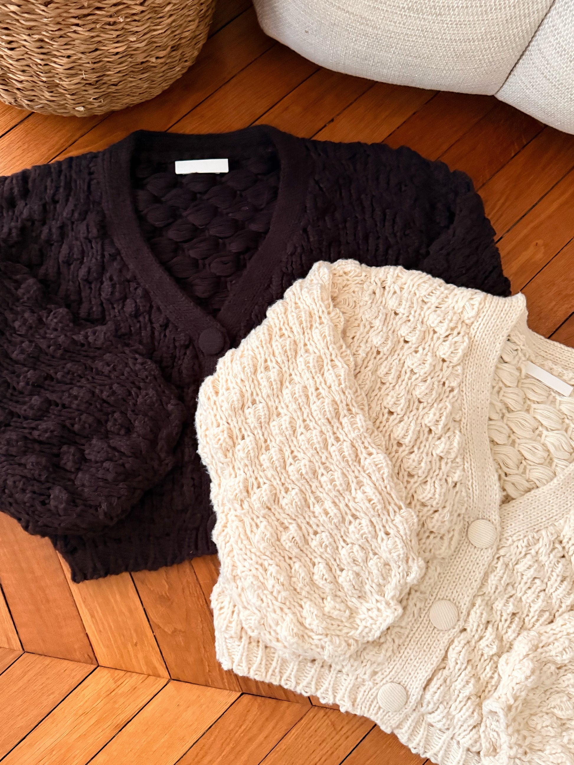 Gilet en maille crochet VOLTAIRE - brun foncé