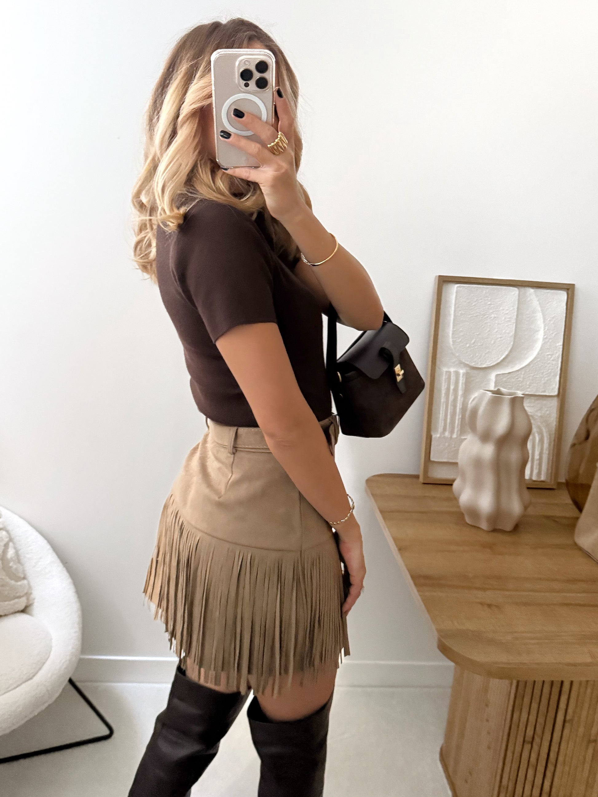 Jupe en suédine à franges SANTANA - beige foncé