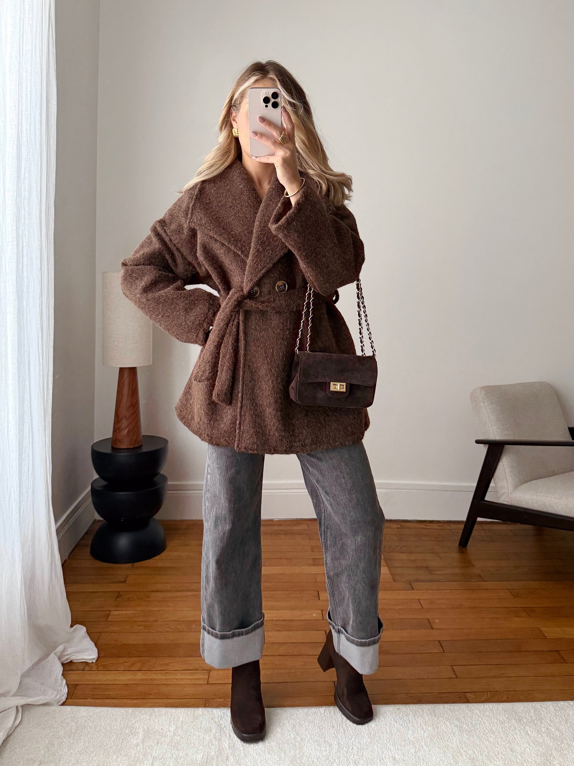 Découvrez le manteau BERGAME mi-long, élégant et raffiné. Son col tailleur et sa ceinture à nouer soulignent la taille avec style, tandis que sa fermeture boutonnée et ses passants ceinture complètent une allure chic et féminine.