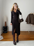 Découvrez la robe midi côtelée JORDANA à la coupe ajustée, sublimée par un buste cache-cœur et une ouverture portefeuille élégante. Une pièce féminine et chic, parfaite pour sublimer votre silhouette.