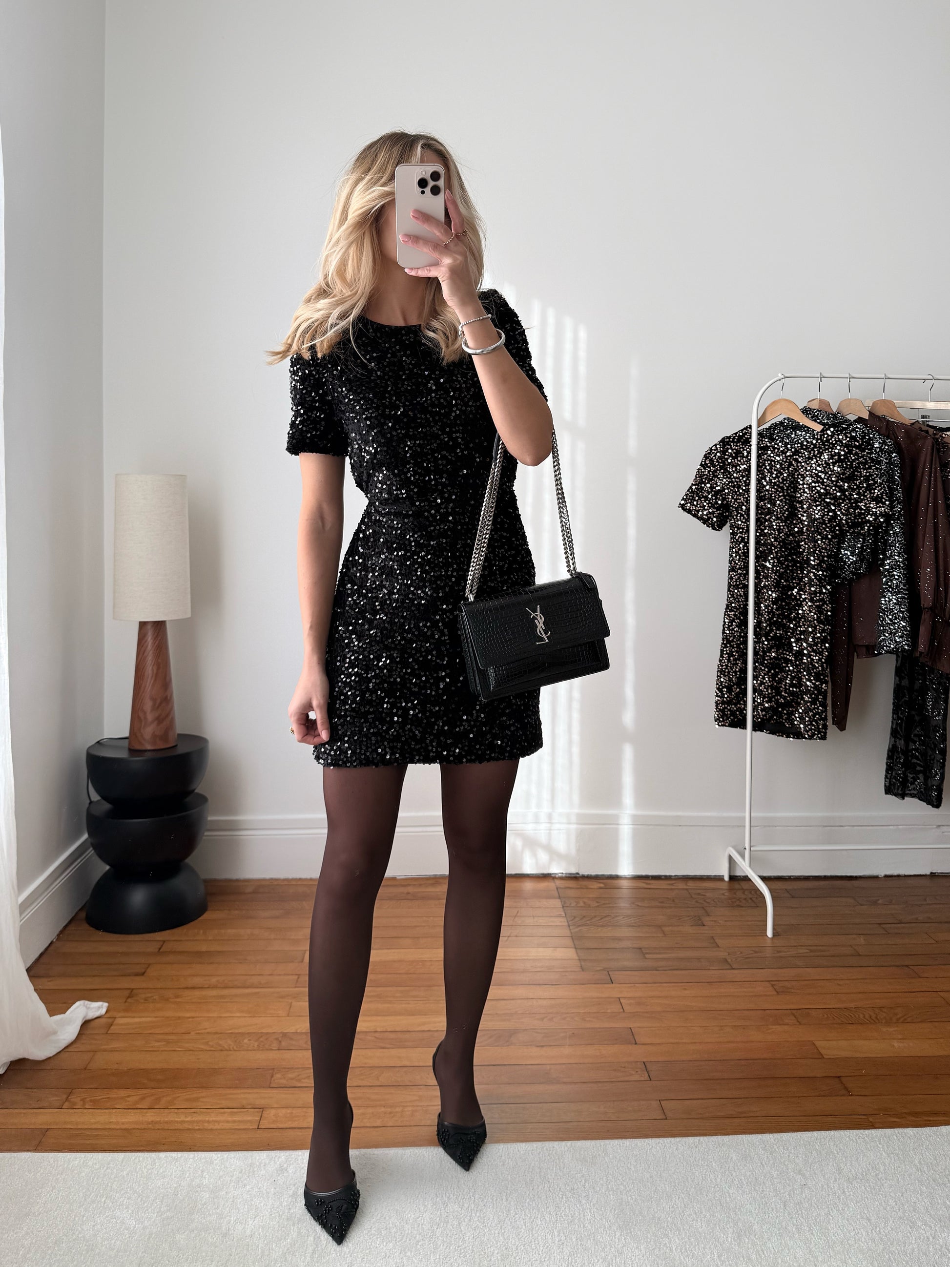 Éblouissante et raffinée, notre robe à sequins LAFAYETTE sublime la silhouette avec son dos élégamment ouvert. Sa taille élastique au dos assure un confort parfait tout en soulignant délicatement les courbes. Une pièce irrésistible pour briller lors de vos plus belles occasions.