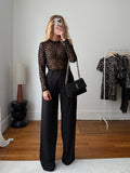 Découvrez le top TALENCE à col rond en résille transparente, sublimé par un imprimé pois en velours. Légèrement stretch, il épouse la silhouette avec élégance et modernité.