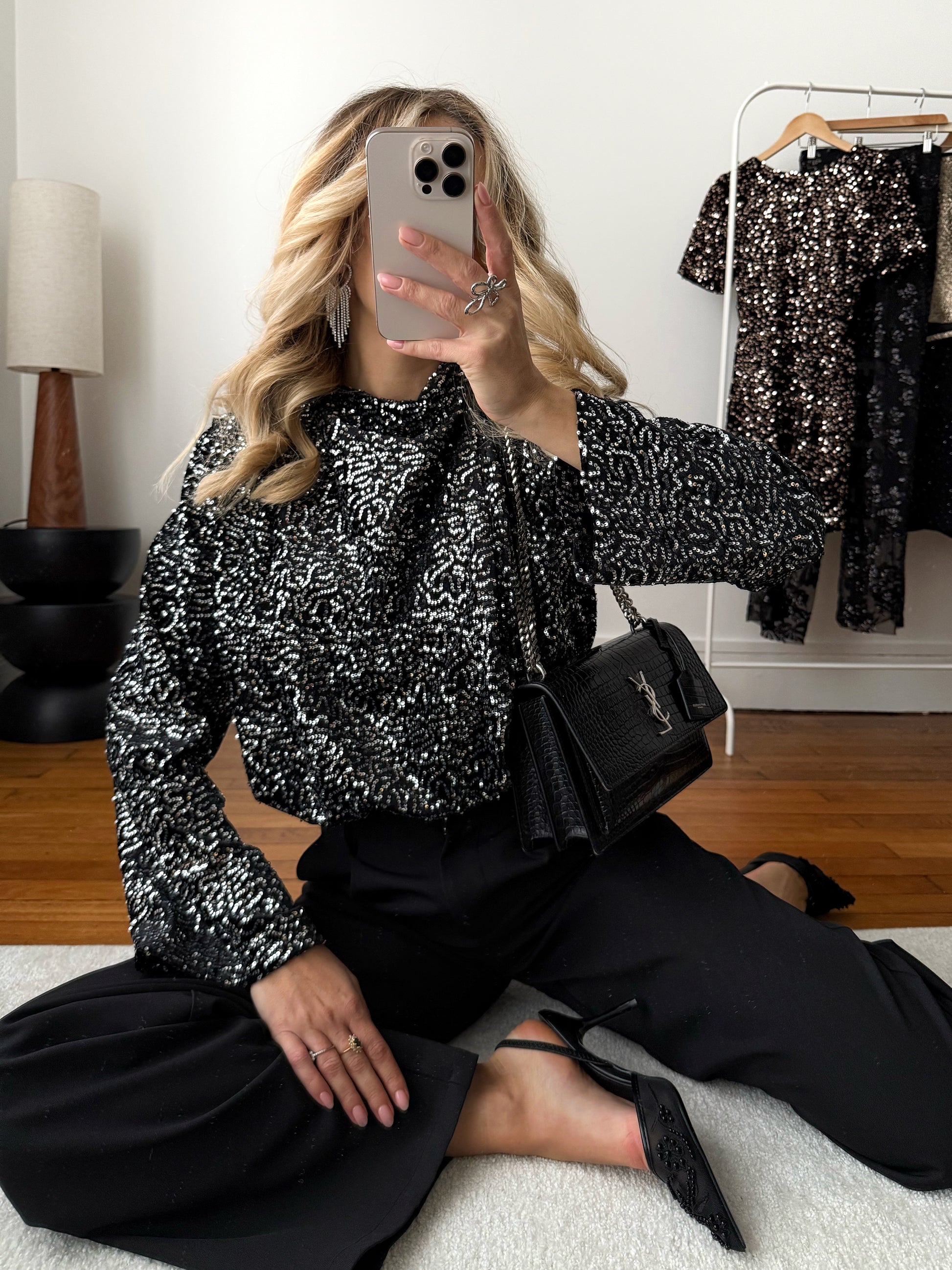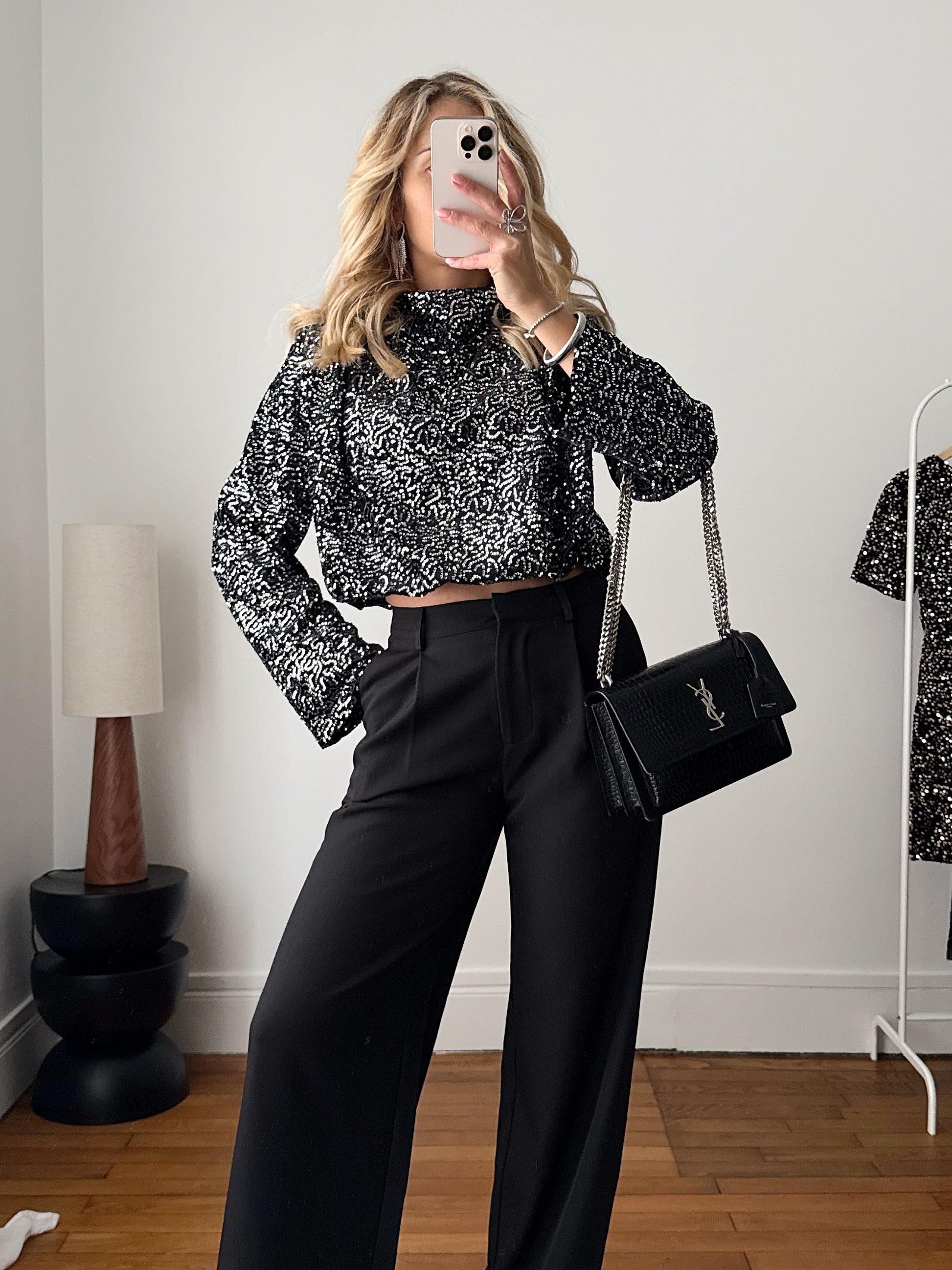 Top en velours brodé de sequins BIANCHI