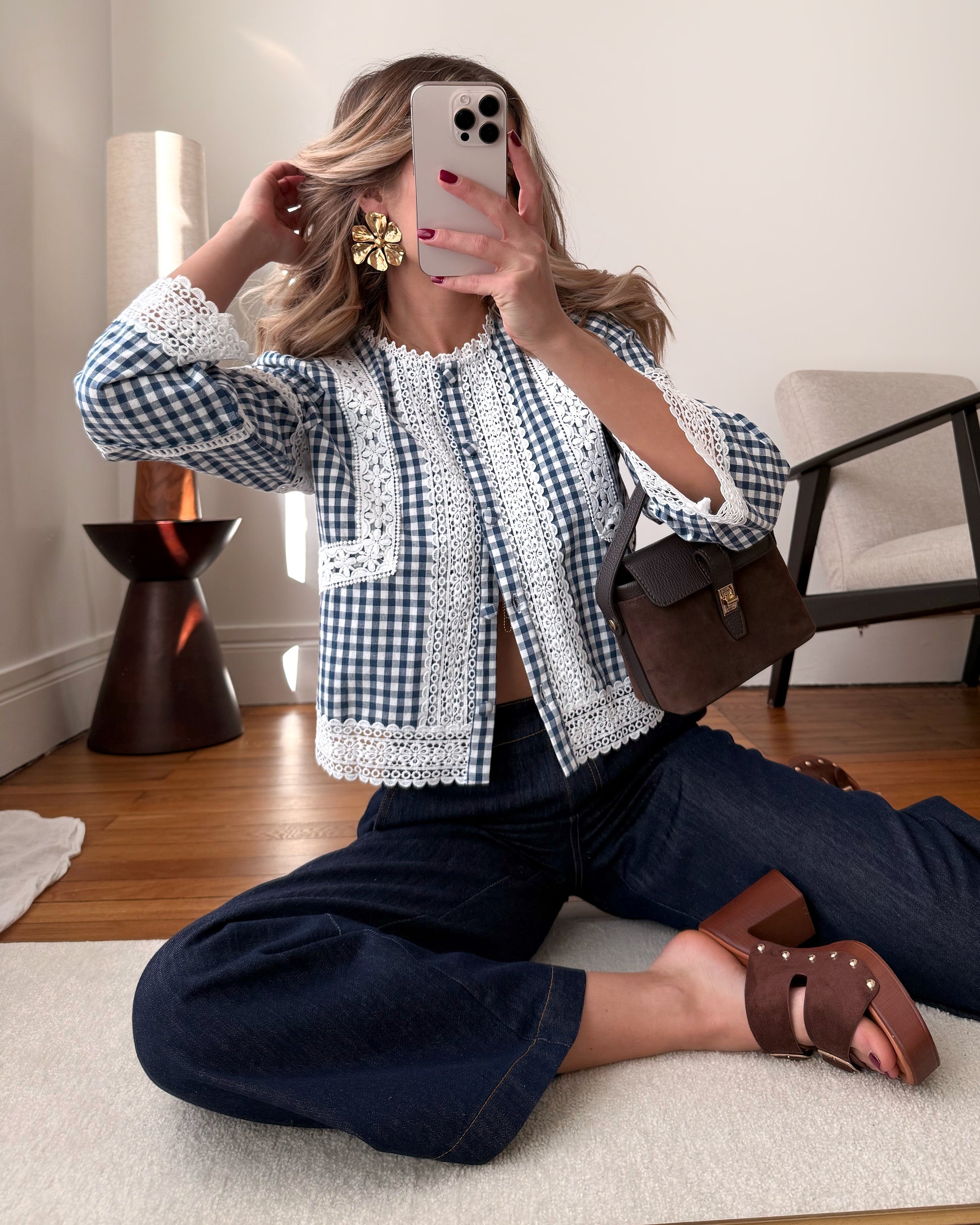 Chemisier brodé à imprimé Vichy JANE