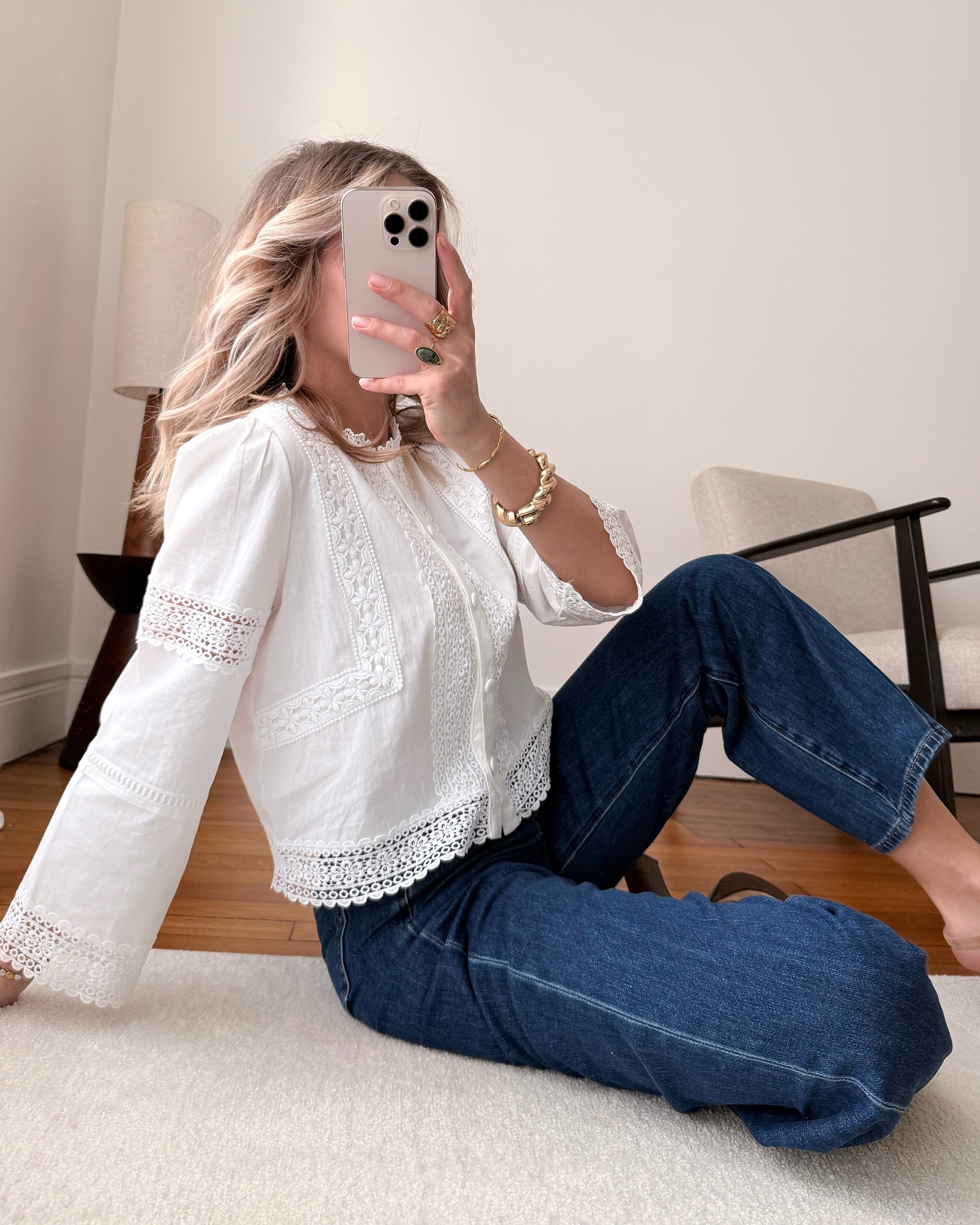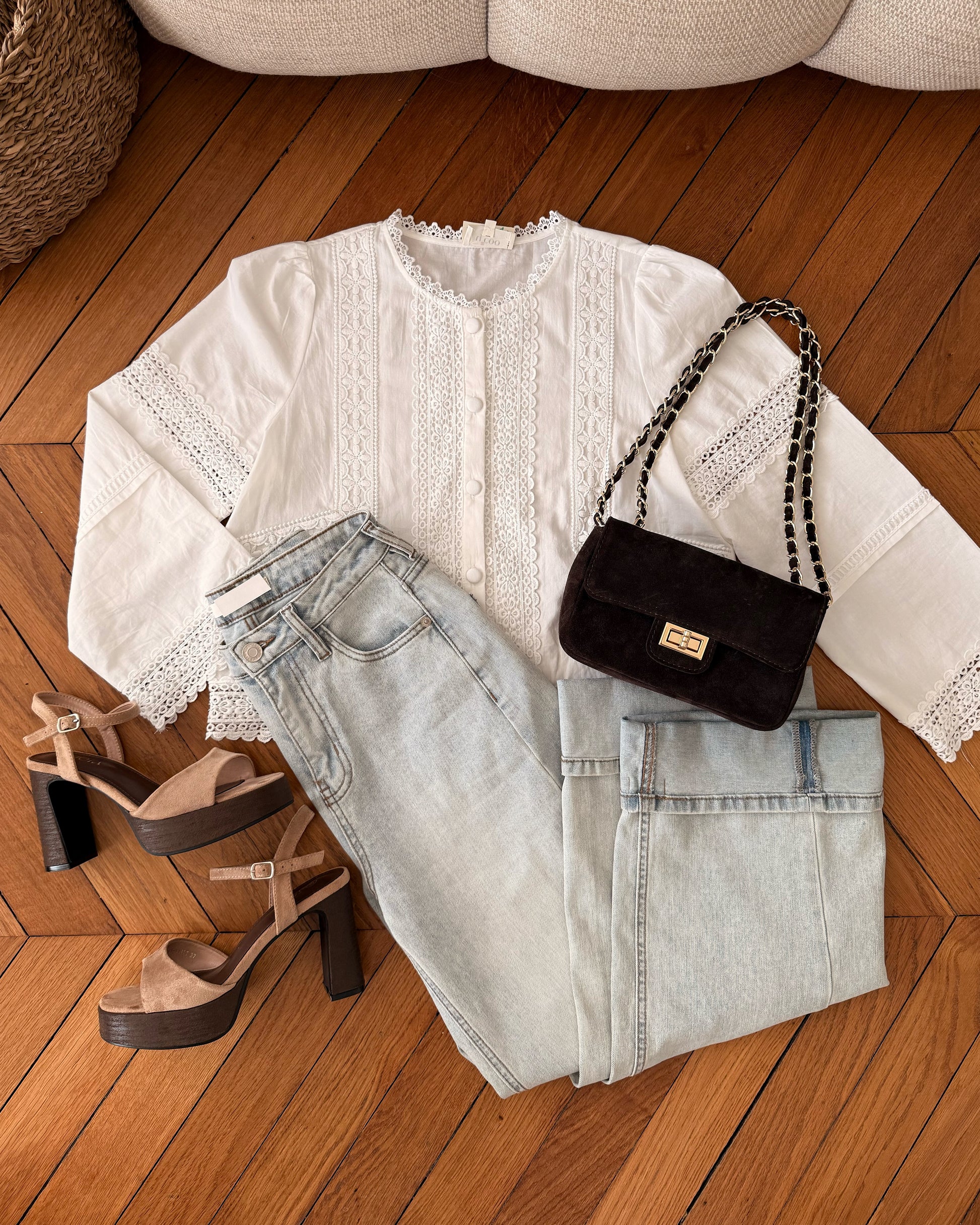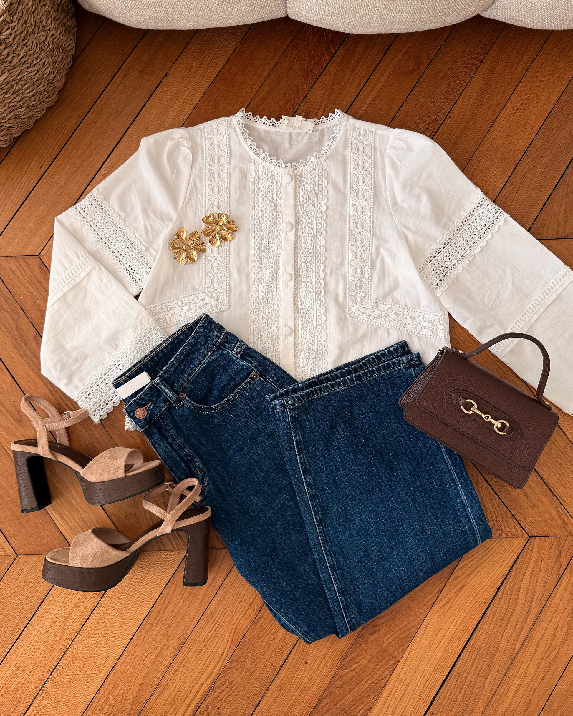 Chemisier brodé à imprimé Vichy JANE - blanc
