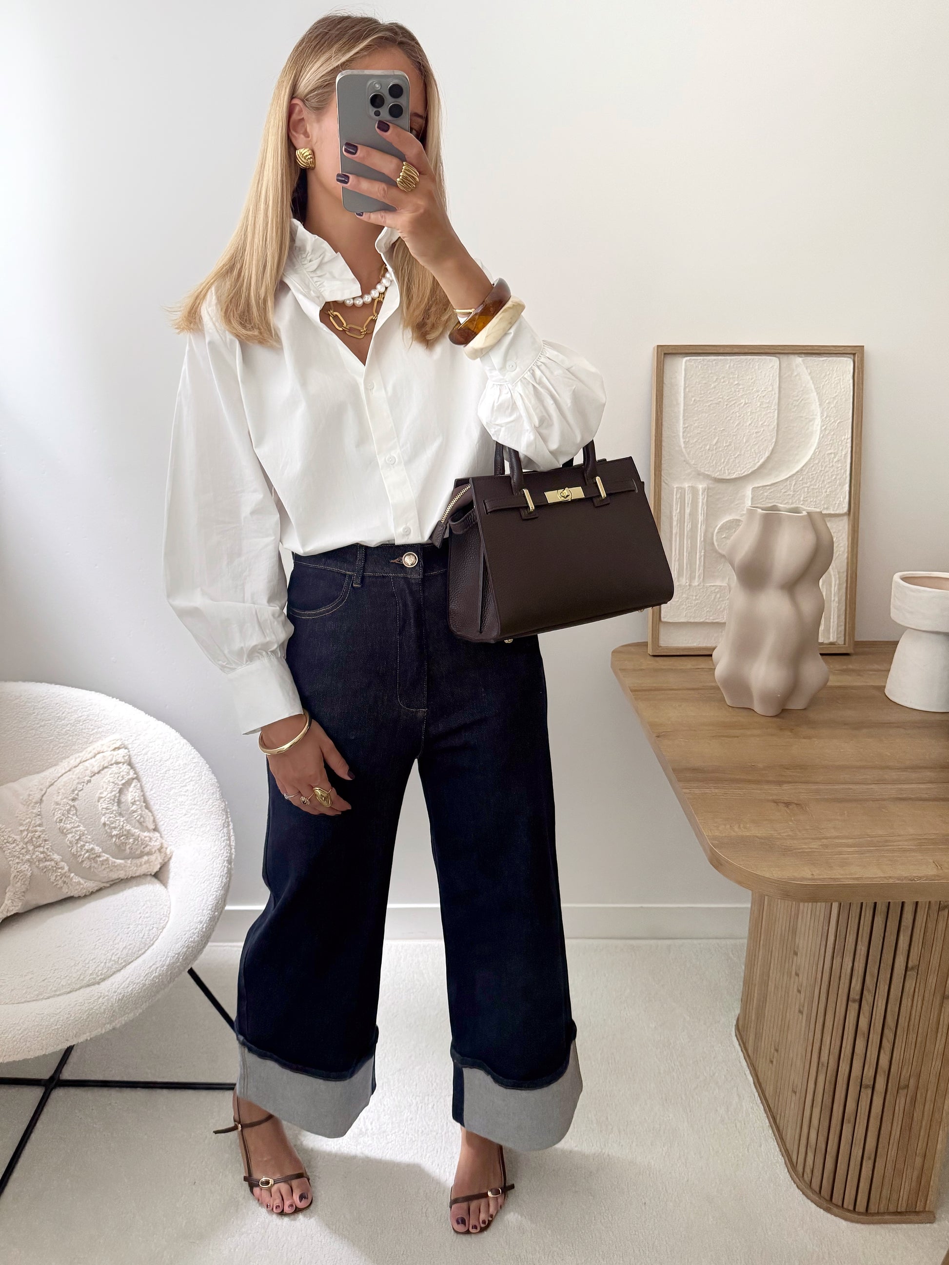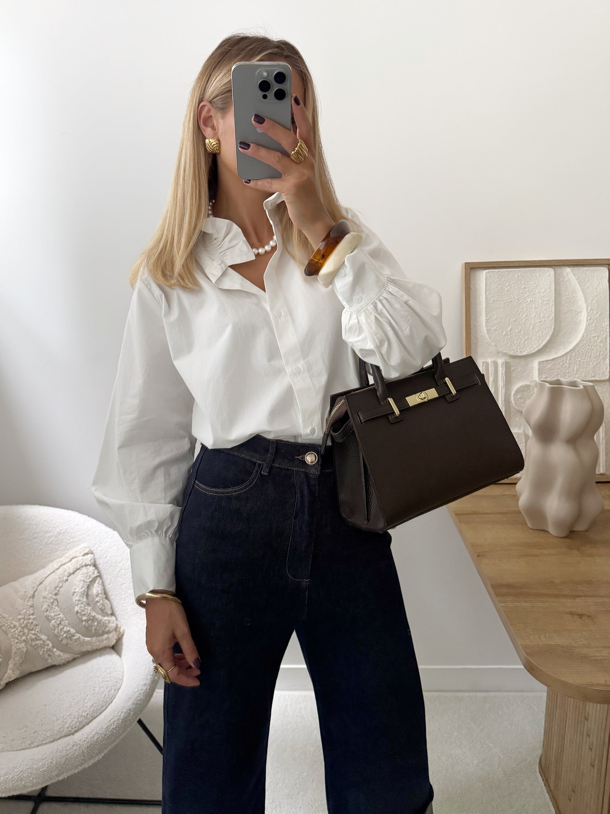 Notre chemisier DEVA au col Victorien séduit par son allure délicatement rétro. Les pinces aux épaules apportent structure et maintien, tandis que la patte de boutonnage affine l’ensemble avec élégance.