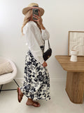 Jupe longue à imprimé floral AUGUSTINE - bleu marine