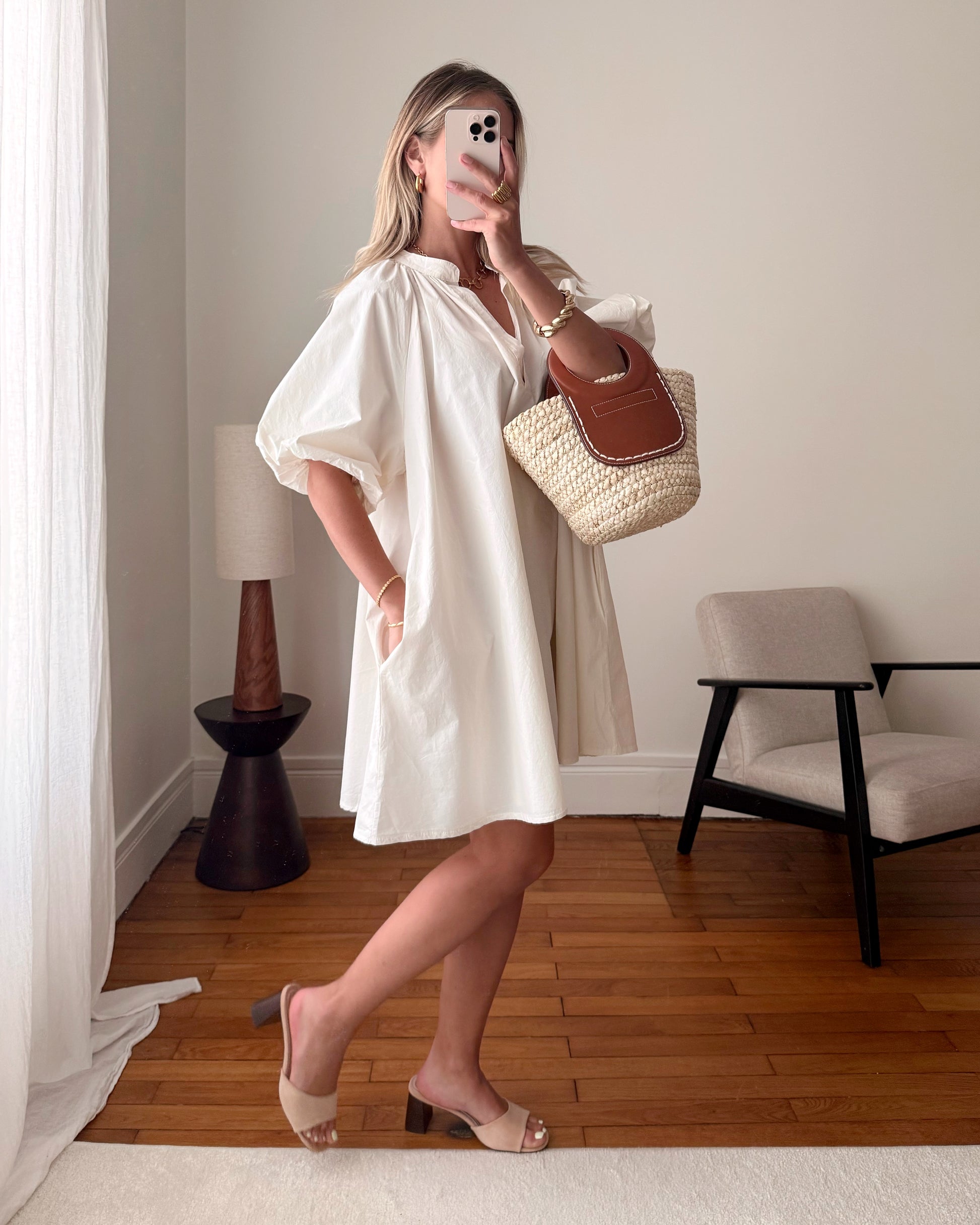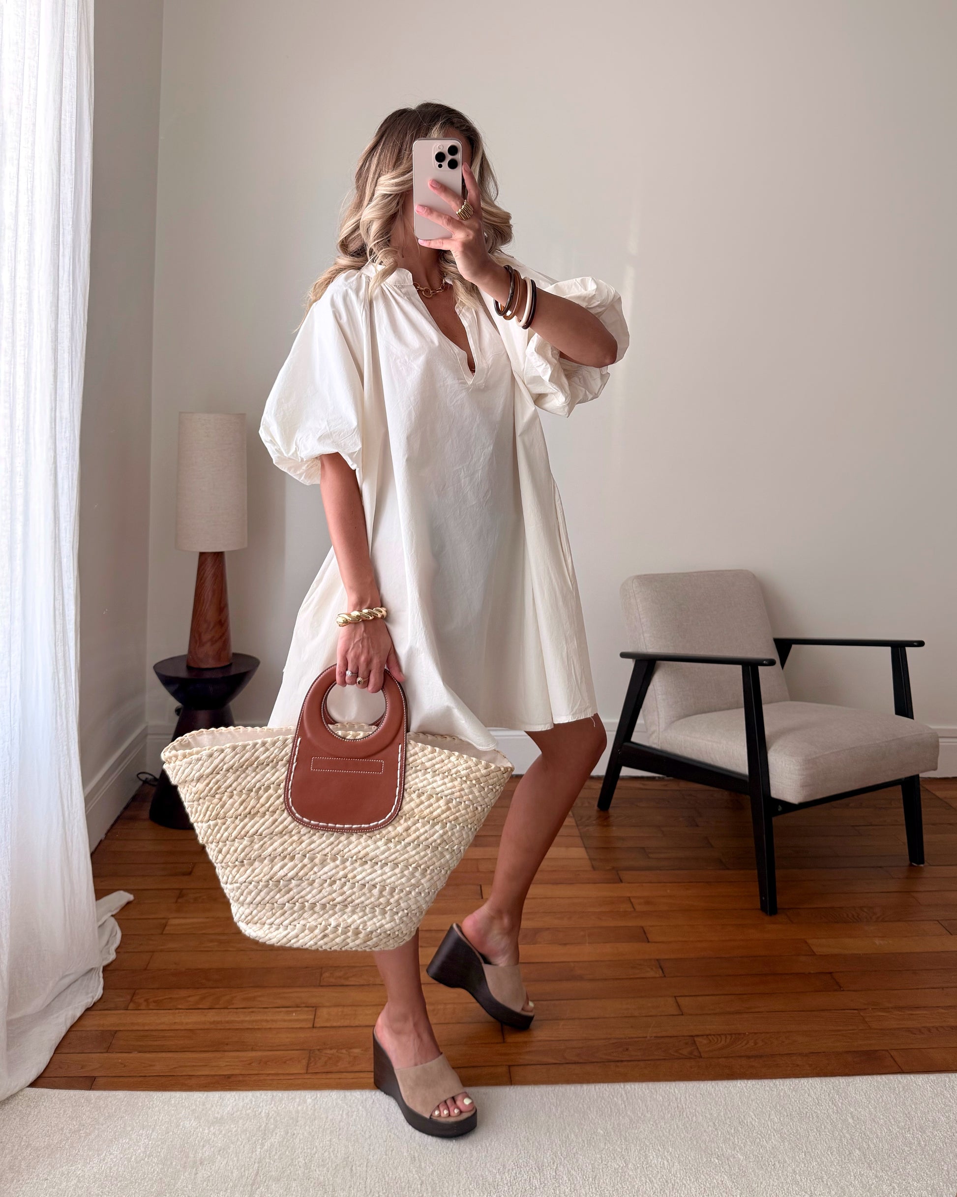 Robe babydoll manches bouffantes ETHEL - écru