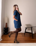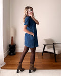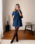 Notre robe courte en denim TAJANI charme par son col victorien sophistiqué et sa semi-patte de boutonnage qui structure délicatement la silhouette. Moderne par sa matière, raffinée par ses détails, elle revisite un essentiel du vestiaire avec élégance. Une pièce intemporelle qui apporte caractère et distinction à vos tenues.