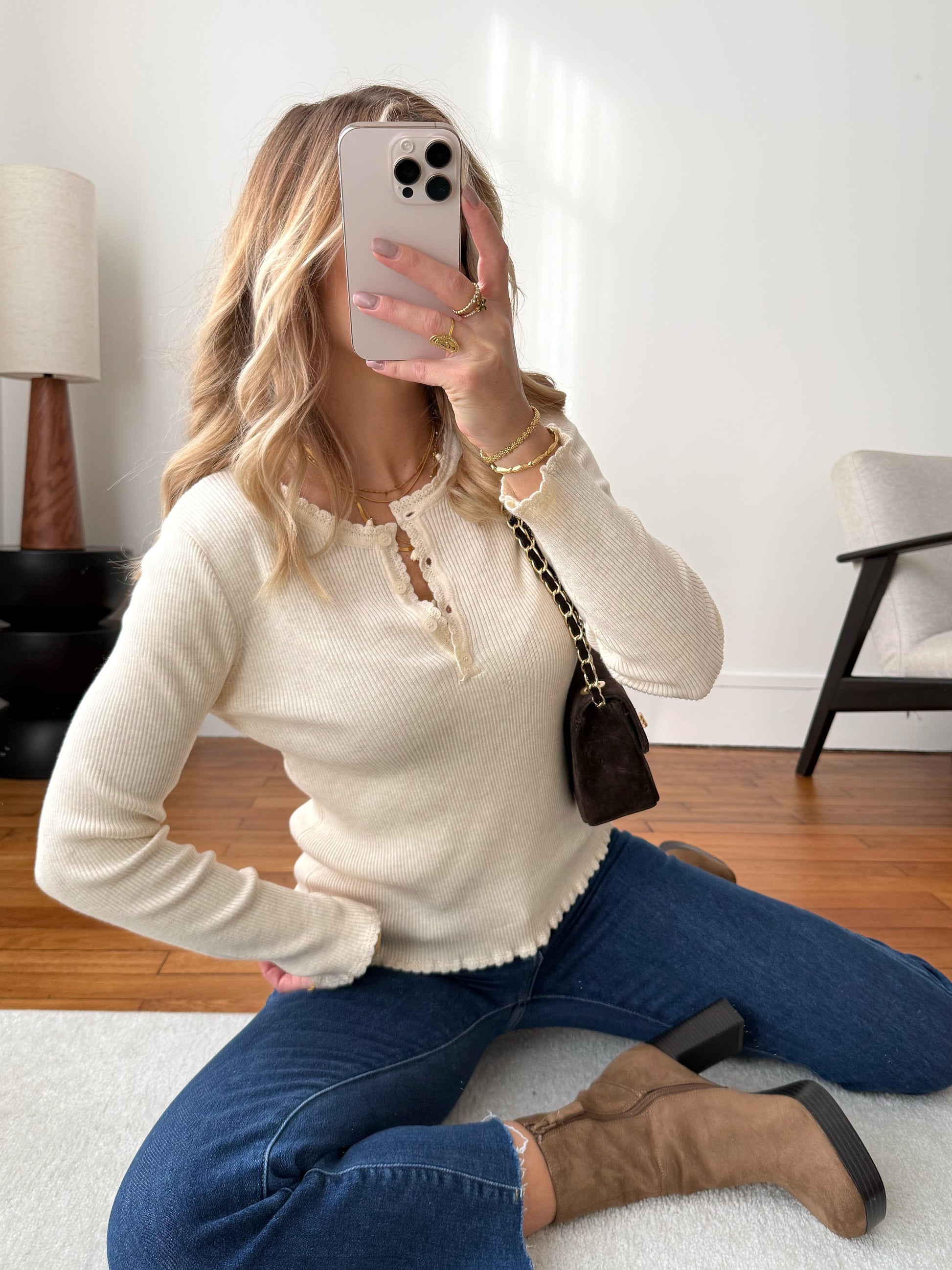 Top en maille côtelée DOMINA - écru